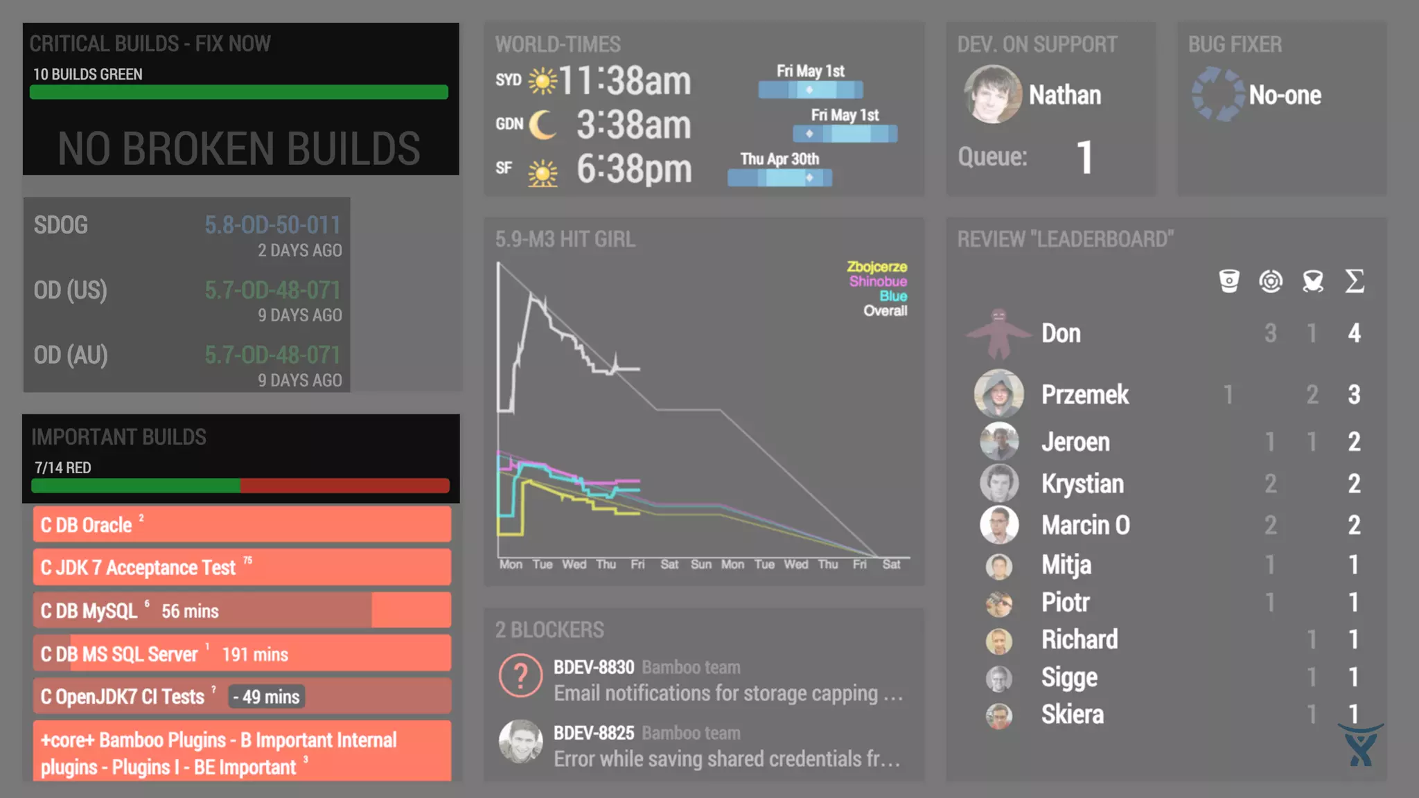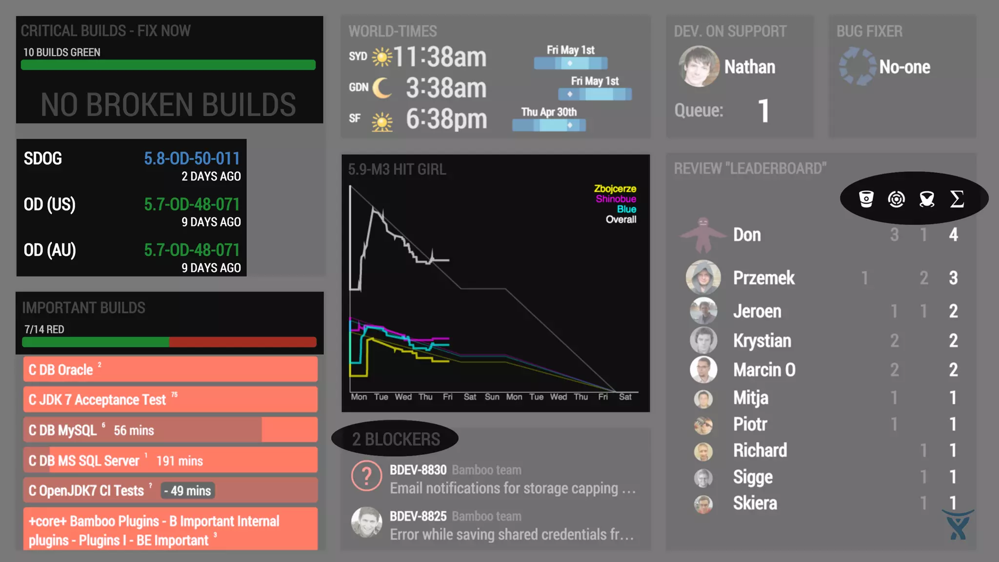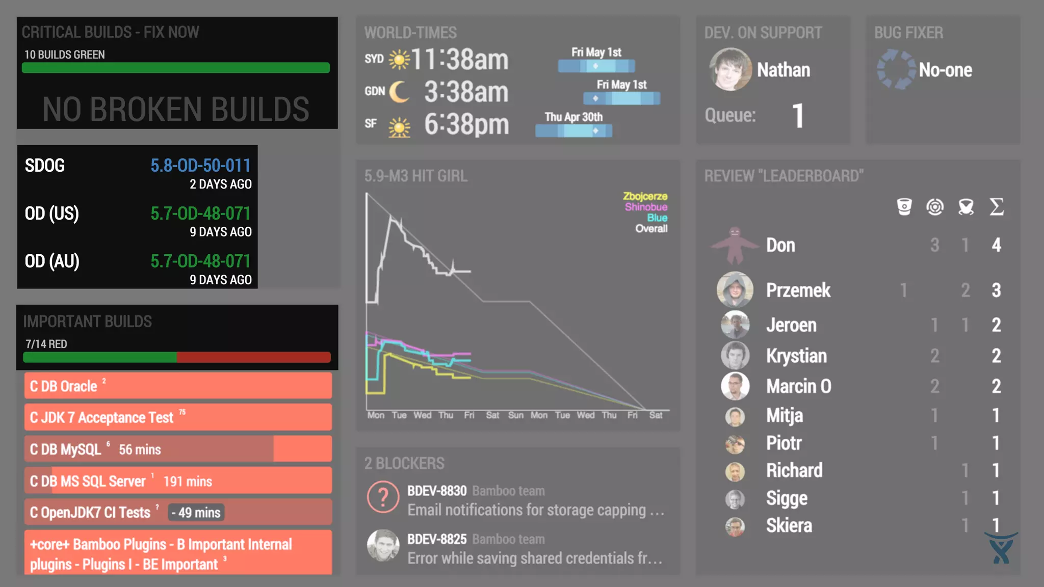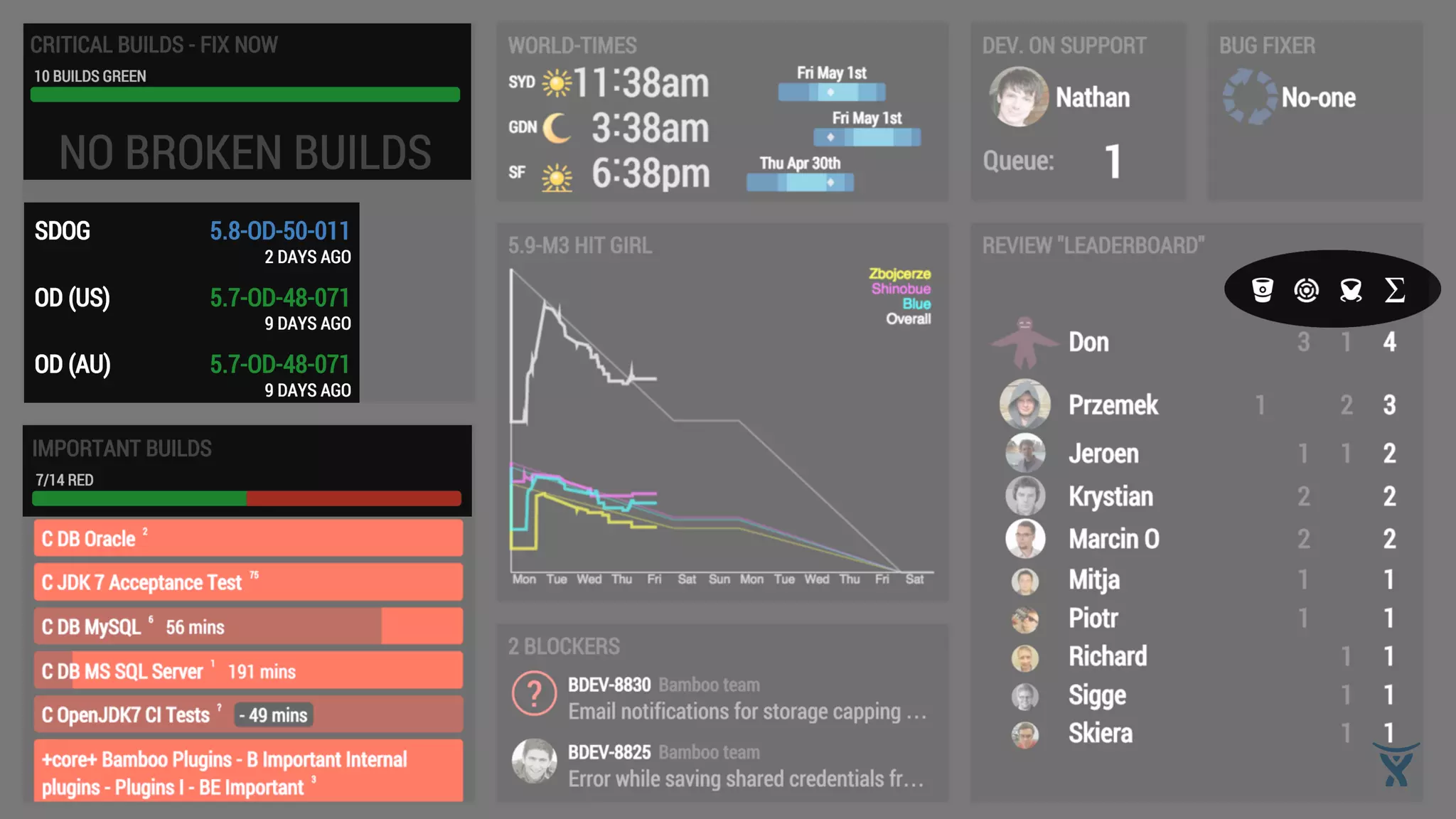 This document provides an overview of continuous integration (CI) practices at Atlassian, a software company. It discusses Atlassian's large build infrastructure that includes 11 Bamboo instances, 900 elastic agents, and over 20,000 build plans. It also describes some of the challenges of implementing CI at a large company, such as long test suites, plugin development, and integrating cloud services. The document emphasizes that CI requires changes to both processes and culture in order to be successful.