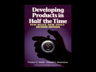 The document discusses estimating the cost of delaying a project. It suggests splitting into teams to brainstorm new product ideas and estimate what delaying the project by 3 months would cost. Key considerations for developing a baseline economic model include pricing trends, market size and share determining unit sales, unit costs, development and marketing expenses. The model can then be used to develop variations considering delays, cost overruns, or sales estimates being off. Decision rules should be created to help determine if added features justify potential delays or costs. Keeping models simple and ensuring decision-makers understand and apply the rules is important.