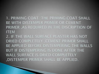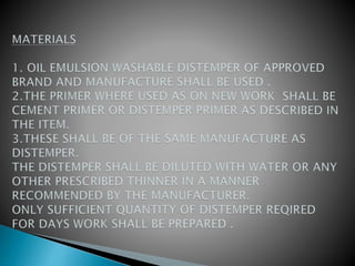 The document provides a detailed overview of paint composition, including its components such as pigments, binders, extenders, and solvents. It discusses different types of paints, their applications, and characteristics like durability and drying times, while also outlining best practices for application and surface preparation. Additionally, it highlights the distinctions between water-based and oil-based paints, emphasizing the importance of choosing the right base coats for a long-lasting finish.