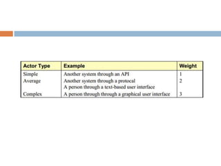 2. Classify each component as Simple, Average or Complex based on the description provided. For example, orders and payments would likely be Complex External Inputs.