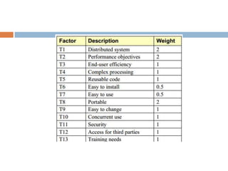 3. Assign the appropriate weight (3, 4, 6 etc.) to each component based on its complexity.