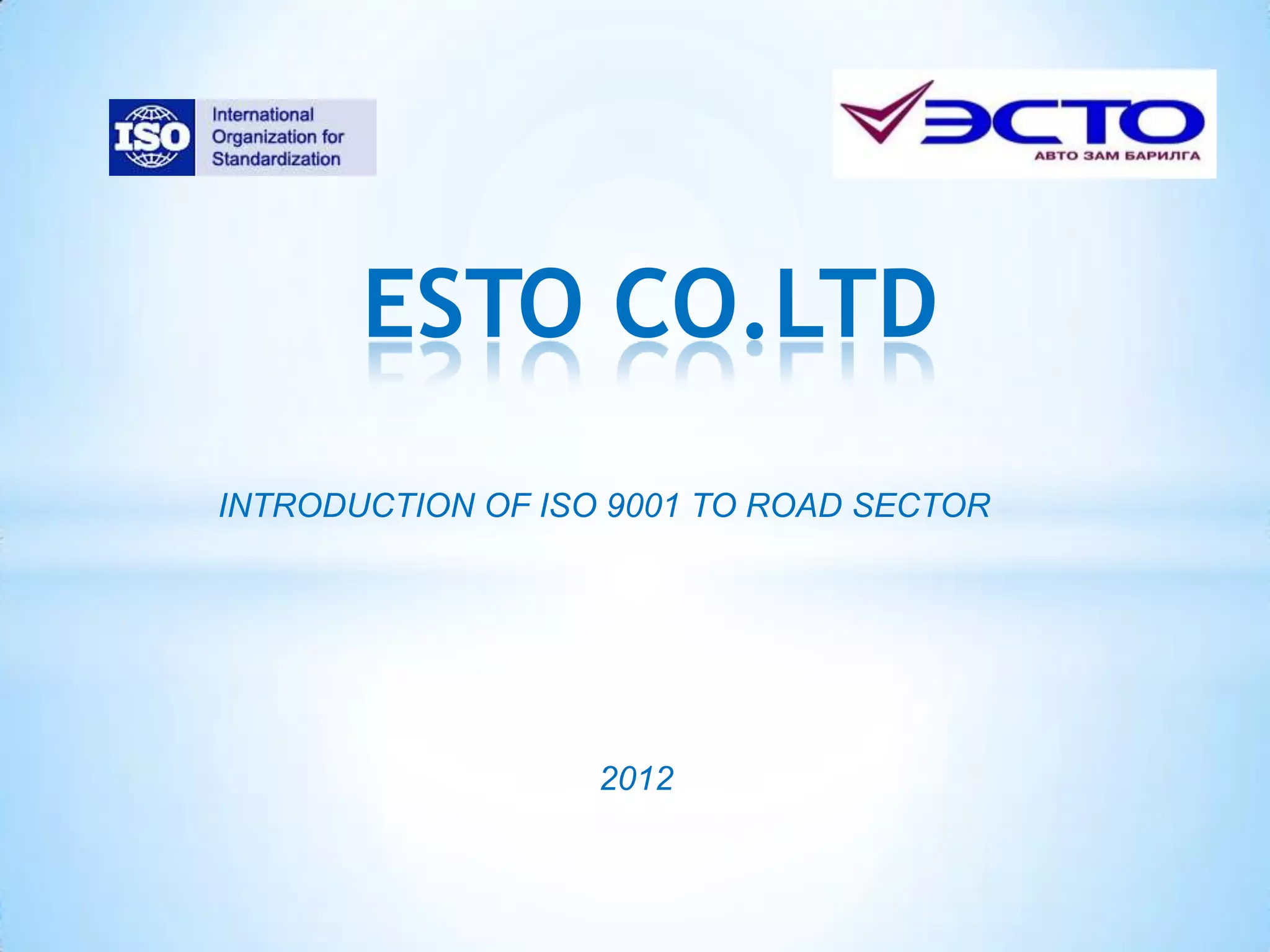 The document introduces ISO 9001 and describes how implementing a quality management system based on ISO 9001:2008 standards can benefit a construction company. Some key benefits highlighted include improved planning and control of activities, increased customer satisfaction, opportunities for international projects, cost reductions from fewer defects, and continuous improvement becoming part of the company culture. The company's action plan focuses on understanding customer expectations, monitoring key processes, management reviews, and clearly defining roles and responsibilities.