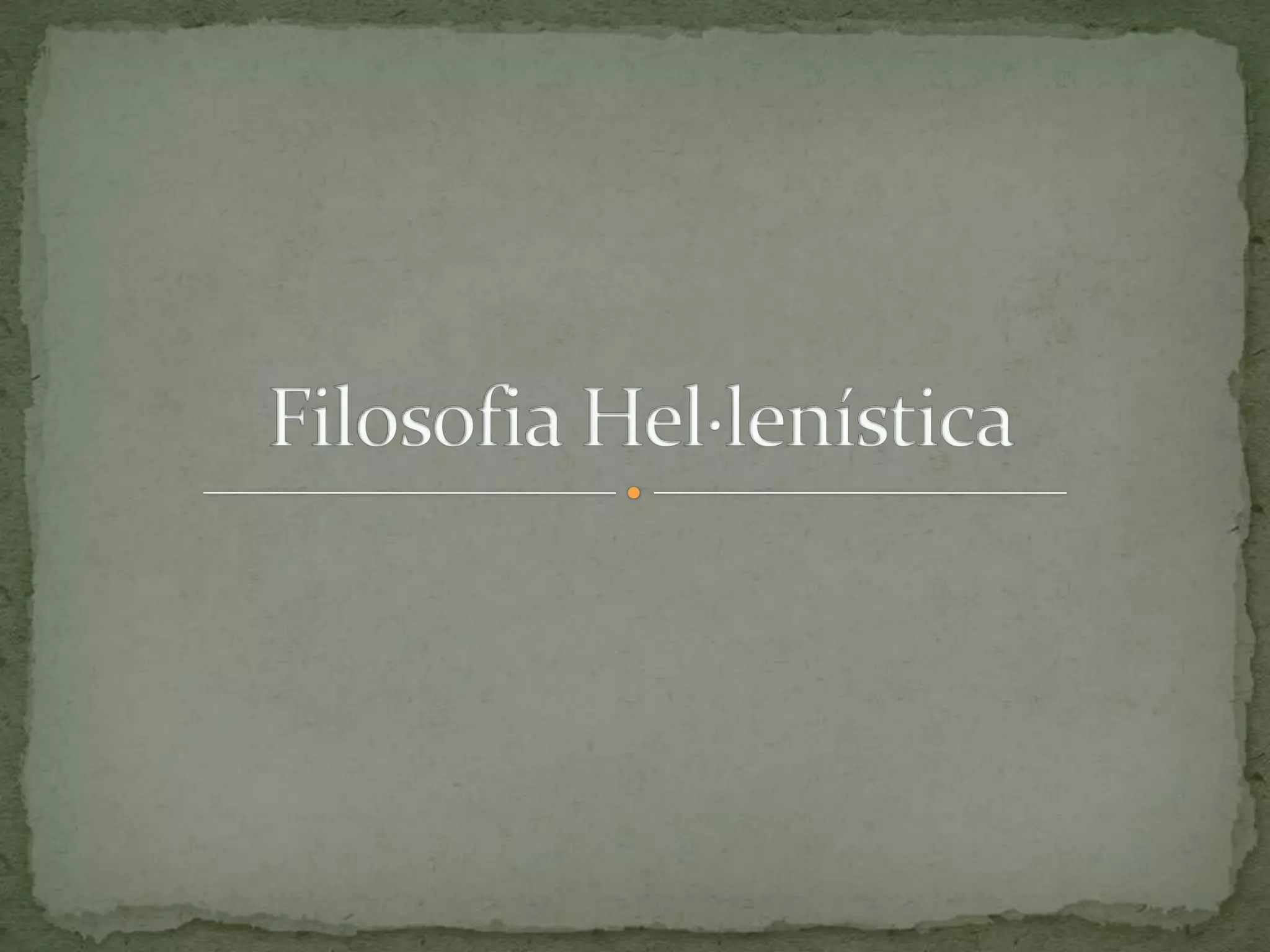 Es basen sobretoten la ètica i no en entendre la veritatLa felicitat i la llibertat son conceptes claus en aquesta etapaComença a partir de la mort de Alexandre MagneCal entendre el context, en el que vivia Grècia.Apunts Generals sobre la filosofia Hel·lenística