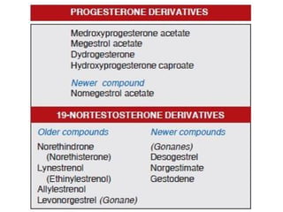 3) Different types of combined oral contraceptives including triphasic pills that mimic the hormonal cycle, and progestin-only mini pills.