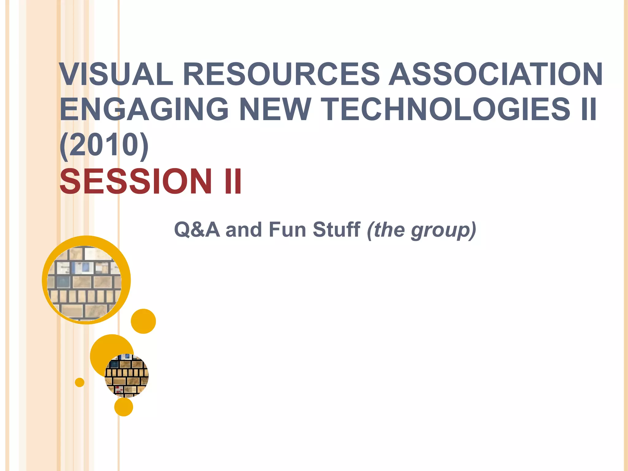 The document appears to be notes from a session of the Visual Resources Association conference that included discussions of various technologies. Several new technologies are mentioned briefly, including software for interpreting sketches, an optical archiving system, techniques for color balancing scans, and a cheap scanner that outperforms expensive ones. The notes also list topics and leaders for informal breakout discussions at different tables.
