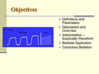 (1) Capnography depicts respiration by measuring exhaled carbon dioxide levels and the CO2 waveform; (2) The CO2 waveform can help validate ETCO2 values, assess airway integrity, and detect proper endotracheal tube placement; (3) Abnormal capnography readings can indicate issues like hypoventilation, hyperventilation, or airway obstruction and help guide clinical intervention.