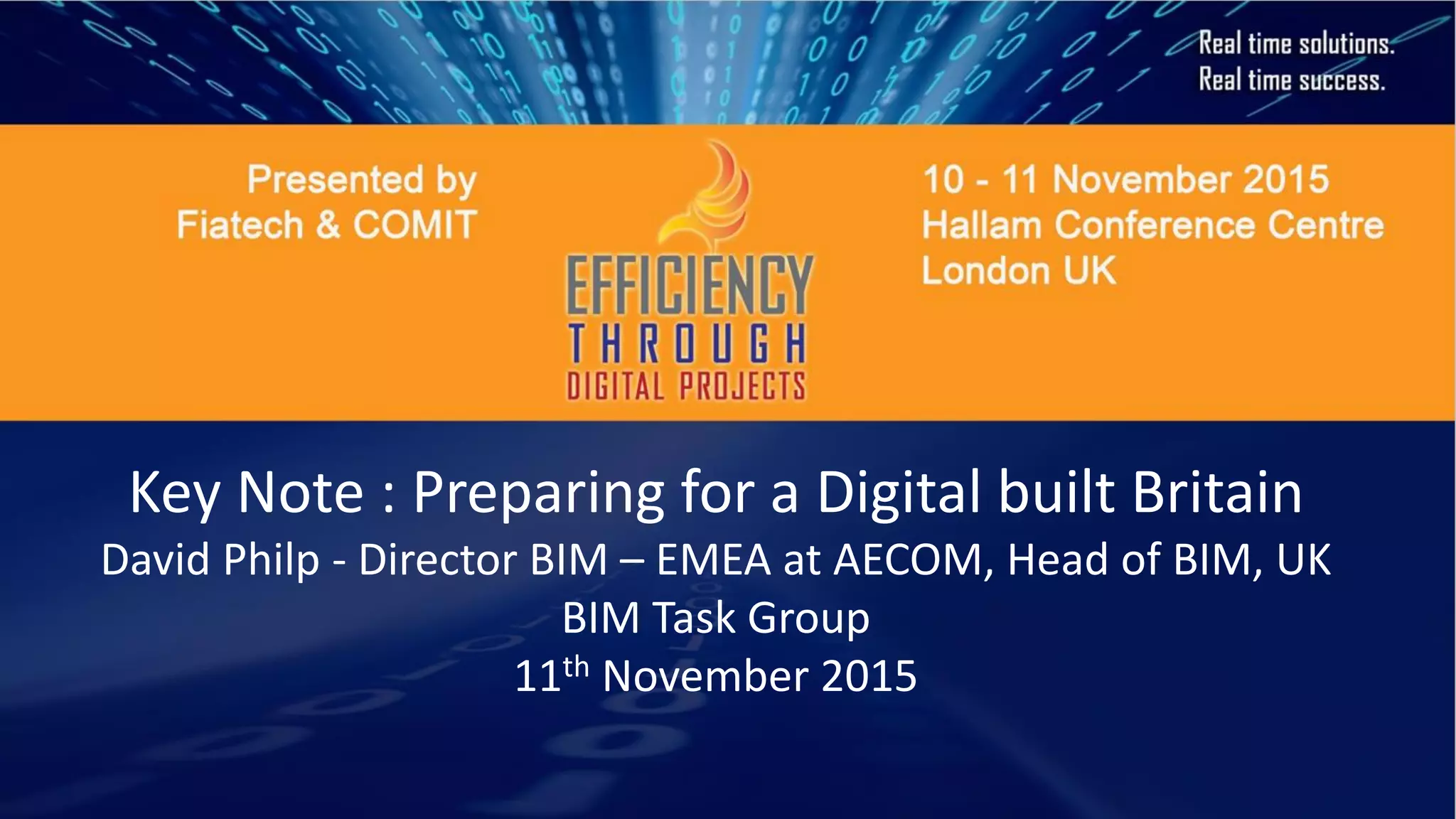 David Philp discusses the importance of digital data for built assets in the UK and the shift towards Level 2 and Level 3 Building Information Modeling (BIM) to enhance efficiency and collaborative working in the construction industry. The document emphasizes the need for integrated data management and the benefits of a common data environment to ensure reliable stakeholder engagement and improved asset performance. It highlights the challenges and opportunities presented by the transition from Level 2 to Level 3 BIM, aiming for real-time access and enhanced decision-making capabilities in project management.