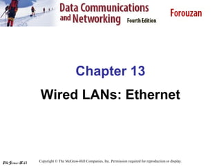The document provides an overview of Ethernet, an IEEE standard for Local Area Networks (LANs) that uses CSMA/CD for media access control. It covers the evolution of Ethernet through various standards, frame formats, addressing schemes, and different types of Ethernet cabling, including Fast Ethernet and Gigabit Ethernet. The information also highlights the transition to full-duplex operation, eliminating collisions and improving throughput.