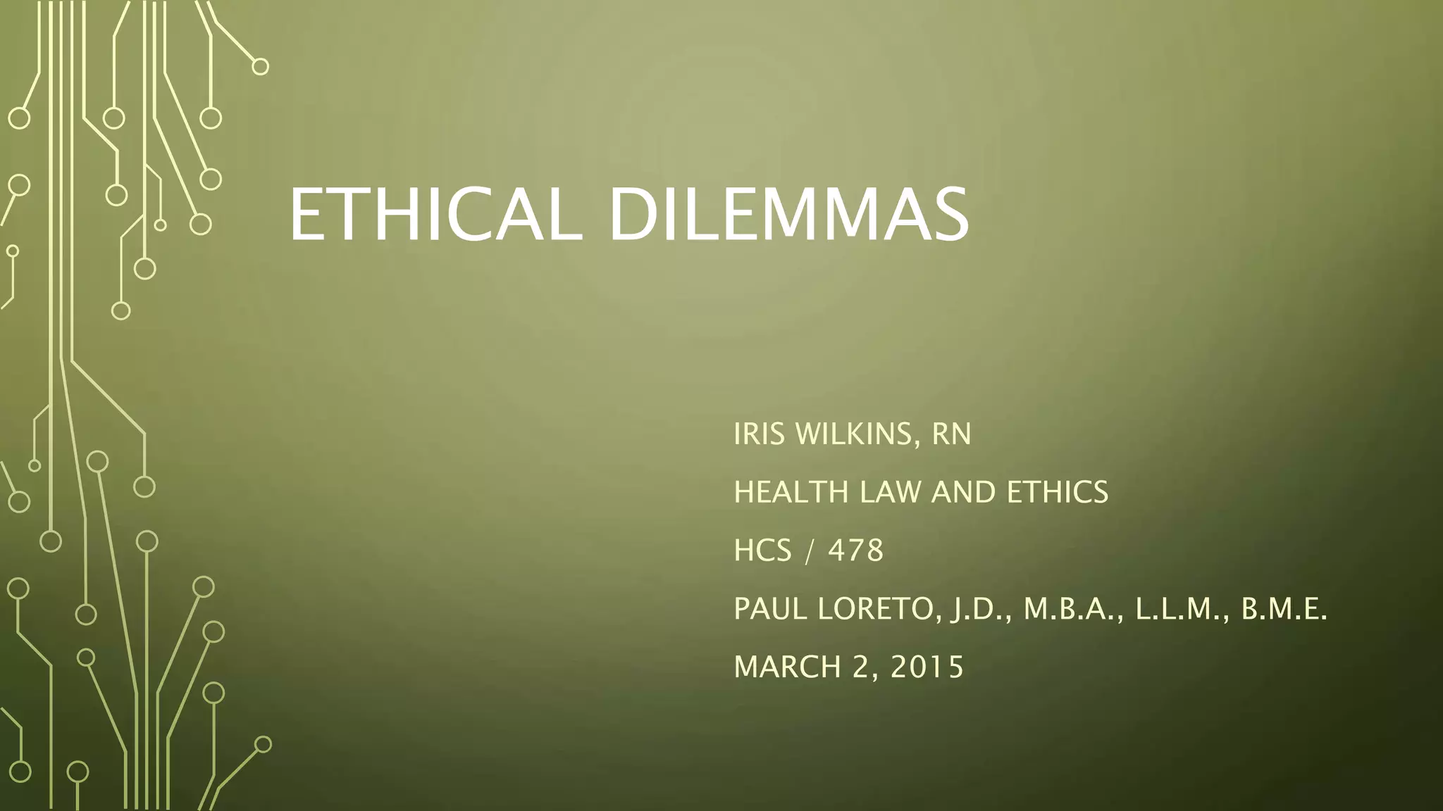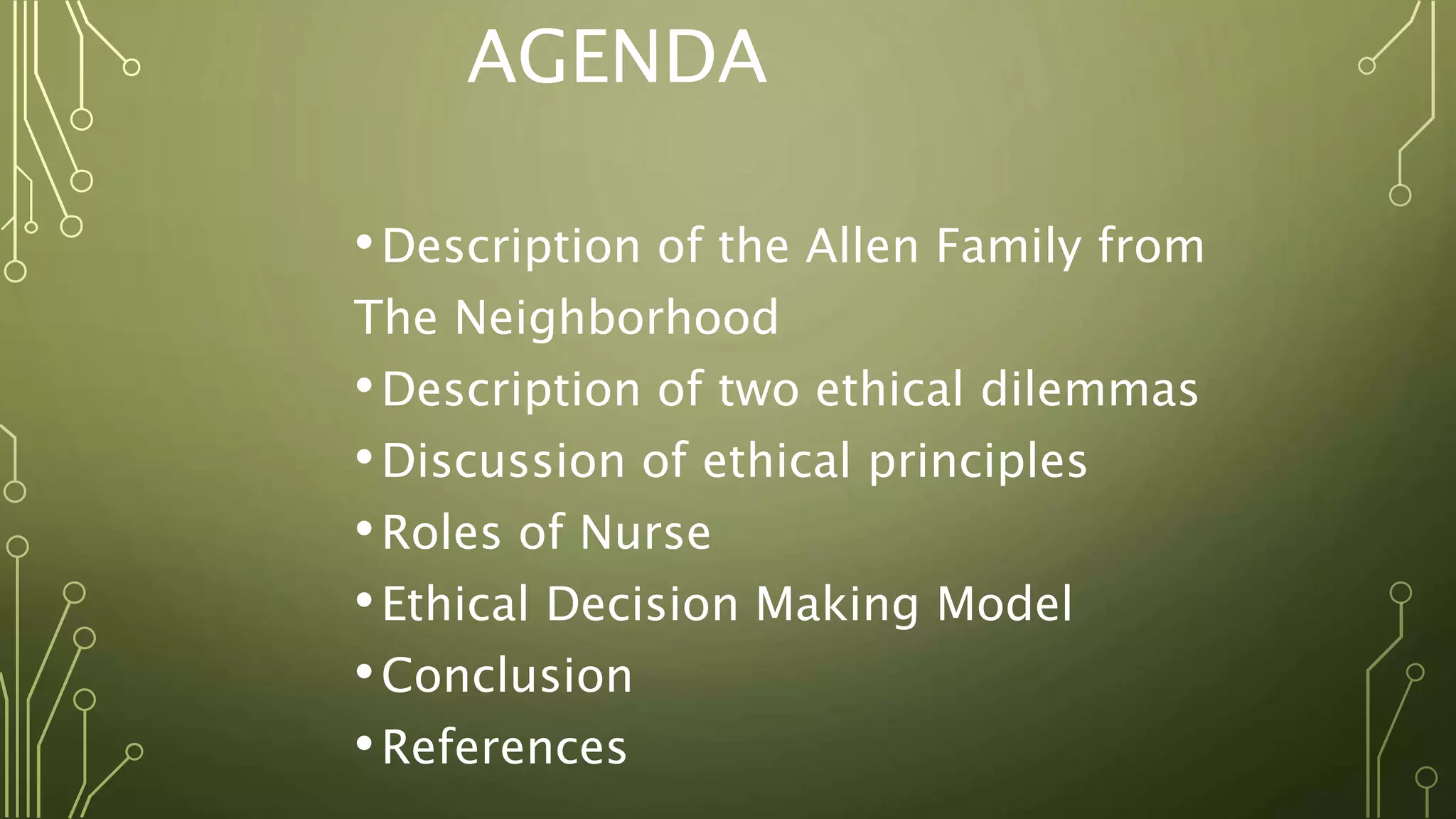 This document outlines two ethical dilemmas faced by the Allen family and discusses relevant ethical principles and the nurse's role. The first dilemma is that Clifford exhibits poor coping skills and depression and refuses help. The second is that Pam has cancer and is ambivalent about treatment. The document discusses the ethical principles of autonomy, beneficence, fidelity and advocacy. It also outlines the IDEA model and Baird method for ethical decision making.