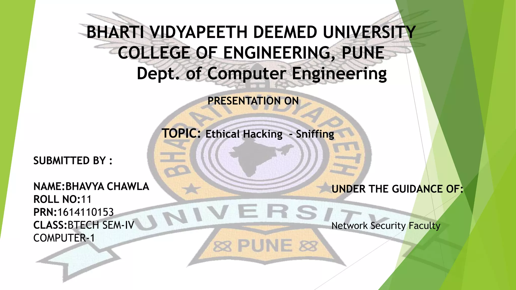 Packet sniffing tools like Ethereal and Snort can be used to intercept network traffic for diagnostic or malicious purposes. Sniffing tools capture packets in either command line or GUI format and some can reassemble packets into original data like emails. Sniffing can reveal usernames, passwords, and other confidential information unless encryption is used. Common sniffing techniques include passive sniffing using hubs, active sniffing using ARP spoofing on switches, and MAC flooding to force switch traffic to a sniffer. Encryption renders captured data useless, while detection tools can find machines in promiscuous sniffing mode.