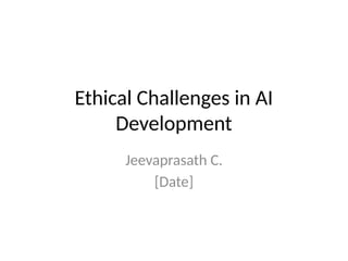 Ethical challenges in the development of artificial intelligence arise from the increasing influence AI systems have on individuals, societies, and global decision-making processes. As AI technologies are designed to learn from vast datasets and make autonomous or semi-autonomous decisions, concerns about bias and fairness become critical, since biased training data or flawed algorithms can reinforce existing social inequalities related to race, gender, economic status, or geography. Transparency and explainability also pose major ethical issues, as many advanced AI models operate as “black boxes,” making it difficult for users and stakeholders to understand how decisions are made, which in turn affects trust, accountability, and the ability to challenge or correct harmful outcomes. Privacy and data protection are equally significant challenges, as AI systems often rely on large amounts of personal and sensitive data, raising risks of surveillance, data misuse, and unauthorized access if strong safeguards are not in place. Additionally, the rapid automation enabled by AI introduces ethical concerns related to job displacement, workforce inequality, and the responsibility of organizations to reskill employees and ensure inclusive economic growth. The potential misuse of AI for malicious purposes, such as deepfakes, autonomous weapons, cyberattacks, and large-scale misinformation, further highlights the need for responsible development and strict regulatory oversight. Moreover, questions of accountability and liability arise when AI systems cause harm, as it is often unclear whether responsibility lies with developers, data providers, users, or the AI system itself. Addressing these ethical challenges requires interdisciplinary collaboration, robust ethical frameworks, transparent governance, and human-centered design principles to ensure that AI development aligns with societal values, protects fundamental rights, and contributes positively to long-term human well-being.