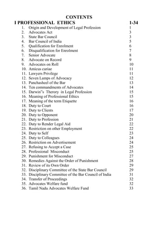 This document discusses professional ethics for lawyers in India. It covers the origin and development of the legal profession in India from ancient times through British rule to the present. Key highlights include: