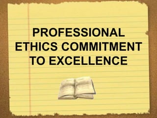 This document discusses the importance of ethics and kindness in teaching. It defines ethics as norms that distinguish acceptable and unacceptable behavior. Teaching requires responsibility and risks that demand much from educators. Kindness is described as the essence of greatness and a characteristic of noble people, opening doors and fostering lifelong relationships. The document outlines several ethical principles for teaching including do no harm, make things better, respect others, be fair, and be loving. It also lists six basic elements of ethical teaching: knowledge, empathy, reasoning, appreciation for moral considerations, courage, and interpersonal skills.