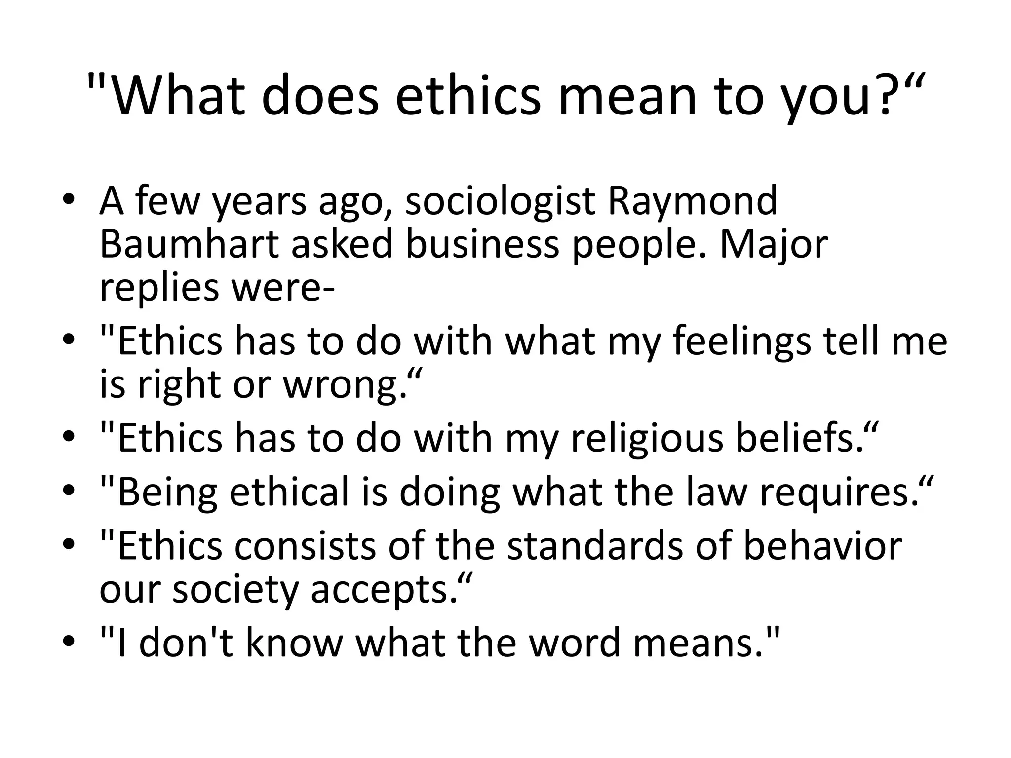 This document discusses ethics and corporate social responsibility. It defines ethics as moral principles that guide what is right and wrong behavior. When asked, many business people associate ethics with feelings, religion or legal compliance. There are three domains of human action - certified law, free choice, and ethics, with ethics representing social standards with less explicit control. The document outlines approaches to ethical decision making including utilitarian, individualism, moral rights, and justice approaches. It also discusses levels of moral development, social responsibility, shades of corporate green in environmental approaches, and the three pillars of an ethical organization as integrity, trust and accountability.