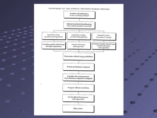 The document outlines an agenda for a training on social work ethics. It will review legal precedents that relate to ethical responsibilities, introduce a decision-making model and ethical screens, discuss issues like dual relationships, privacy and confidentiality, informed consent, and impairment of colleagues. It will use case examples and exercises to help attendees apply ethical decision-making to different practice situations. Key topics include maintaining appropriate boundaries, managing conflicts of interest, and balancing client autonomy and other ethical responsibilities.