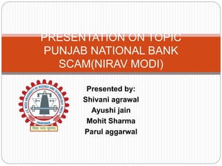 Punjab National Bank was defrauded of $1.77 billion in a scam perpetrated by Nirav Modi, a diamond trader, and his associates. Modi fraudulently obtained letters of undertaking from PNB to secure loans from other banks without providing collateral. The fraud was detected in January 2018 when PNB officials noticed fraudulent transactions were not recorded properly. The scam has significantly impacted PNB and other public sector banks through loss of funds and declining share prices. Investigations into the fraud are ongoing along with efforts to recover funds from Modi's seized assets.