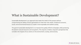 Sustainabledevelopment is a comprehensive framework that aims to