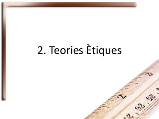 • Les ètiques deontològiques són ètiques