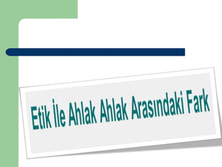 Etik İle AhlakAhlak Arasındaki Fark