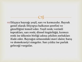 Etiypya bayrağıyeşil, sarı ve kırmızıdır. Bayrak