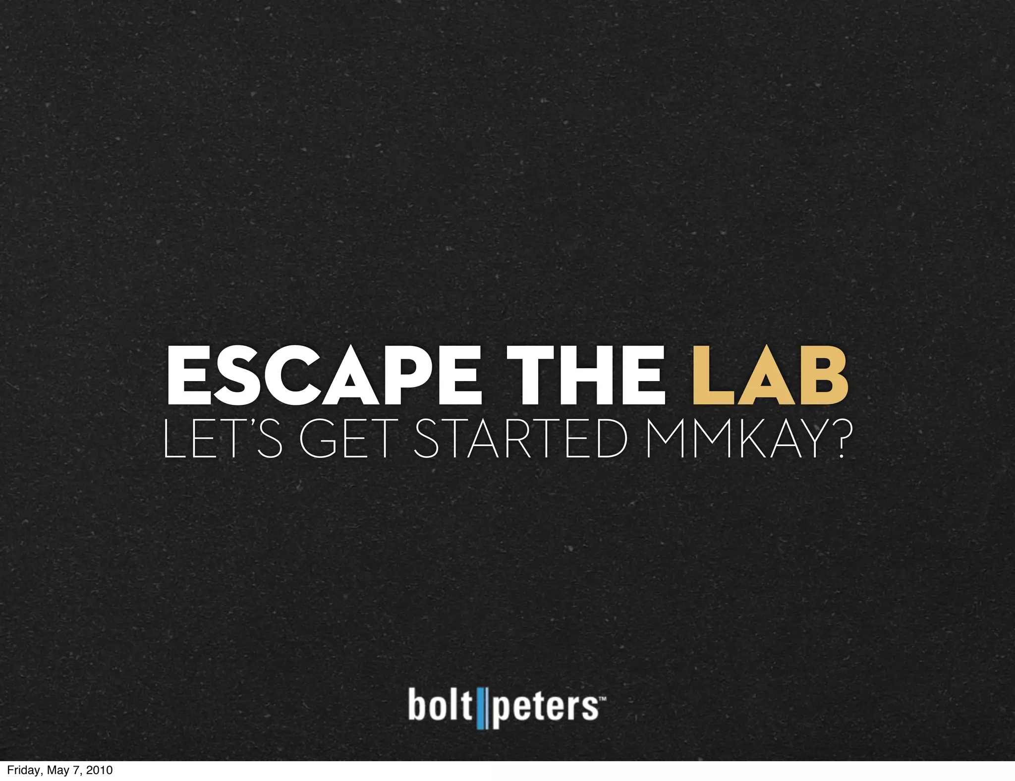 The document provides instructions and information for a remote research event called "Escape the Lab". It begins at 9:00 AM on Friday, May 7, 2010. Various hashtags and instructions are provided throughout for participating in the remote event. Information is also shared about conducting remote user research, including recruiting participants, moderating studies remotely, tools that can be used, and best practices.