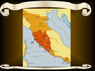Il documento tratta della storia e della cultura degli Etruschi, un popolo che ha abitato l'Italia pre-romana e ha esercitato un'importante influenza culturale e religiosa. Evidenzia la loro organizzazione politica, la religione, l'arte e la scrittura, nonché il loro declino e l'eredità culturale trasmessa a Roma. Gli Etruschi sono noti per la loro abilità artigianale, l'influenza nella lingua e nelle istituzioni romane, nonché per le necropoli che offrono preziosi reperti archeologici.