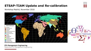 The document discusses plans to update the ETSAP-TIAM energy-economic model through a collaborative process. It proposes organizing workshops with ETSAP-TIAM users to identify needed updates, revising model data and structures, recalibrating the model, and documenting results. The goals are to facilitate analysis of deep decarbonization scenarios and improve linking of ETSAP-TIAM with other models. A two-year, €100,000 budget is presented to fund updating energy balances and technologies, workshops, recalibration, documentation, and scenario development through biannual phases.