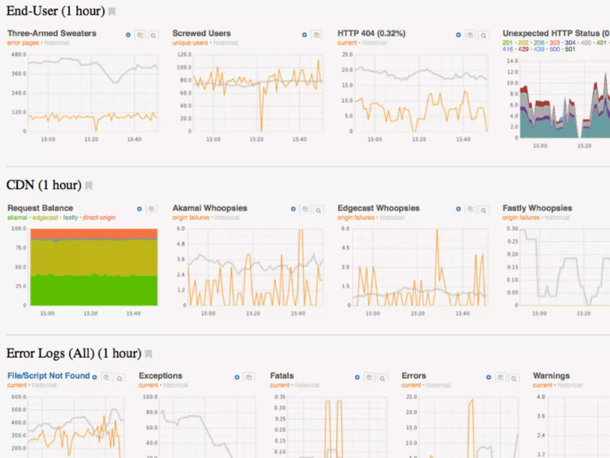 Etsy uses a variety of open source and custom tools to monitor their infrastructure including Ganglia, StatsD, Graphite, Syslog-Ng, Logster, Splunk, Logstash, Eventinator, Chef, Nagios, and Nagios Herald. They collect system, application, and log metrics and events and store them for analysis. Their monitoring setup is fully configured through Chef to provide consistent deployments across environments with over 120 monitoring recipes.