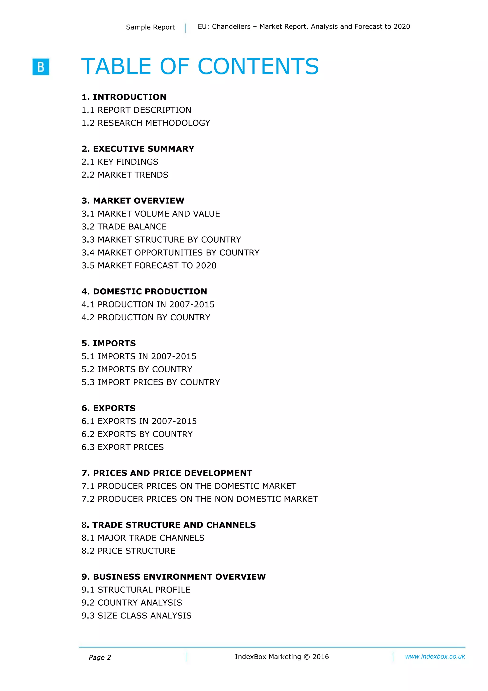 This report analyzes the EU chandelier market, covering market size, value, production, trade flows, and price developments. It provides insights into market trends, forecasts for 2020, and includes data on imports and exports across EU member states. Additionally, it profiles leading companies and offers a comprehensive view of the business environment within the industry.