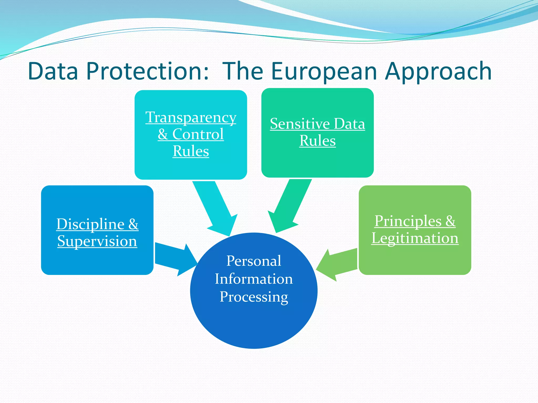 This document discusses the European approach to data protection and reconciling it with other interests and rights. It outlines the key principles of European data protection law, including requirements for personal data processing, sensitive data rules, and transparency. It acknowledges tensions with economic, security and other interests. It analyzes rules governing international data transfers and derogations. While the law initially took a flexible approach, more recent court rulings have emphasized data protection as a fundamental right and imposed stricter standards for determining if non-EU countries ensure an adequate level of protection. The upcoming General Data Protection Regulation poses challenges in further restricting data transfers abroad.