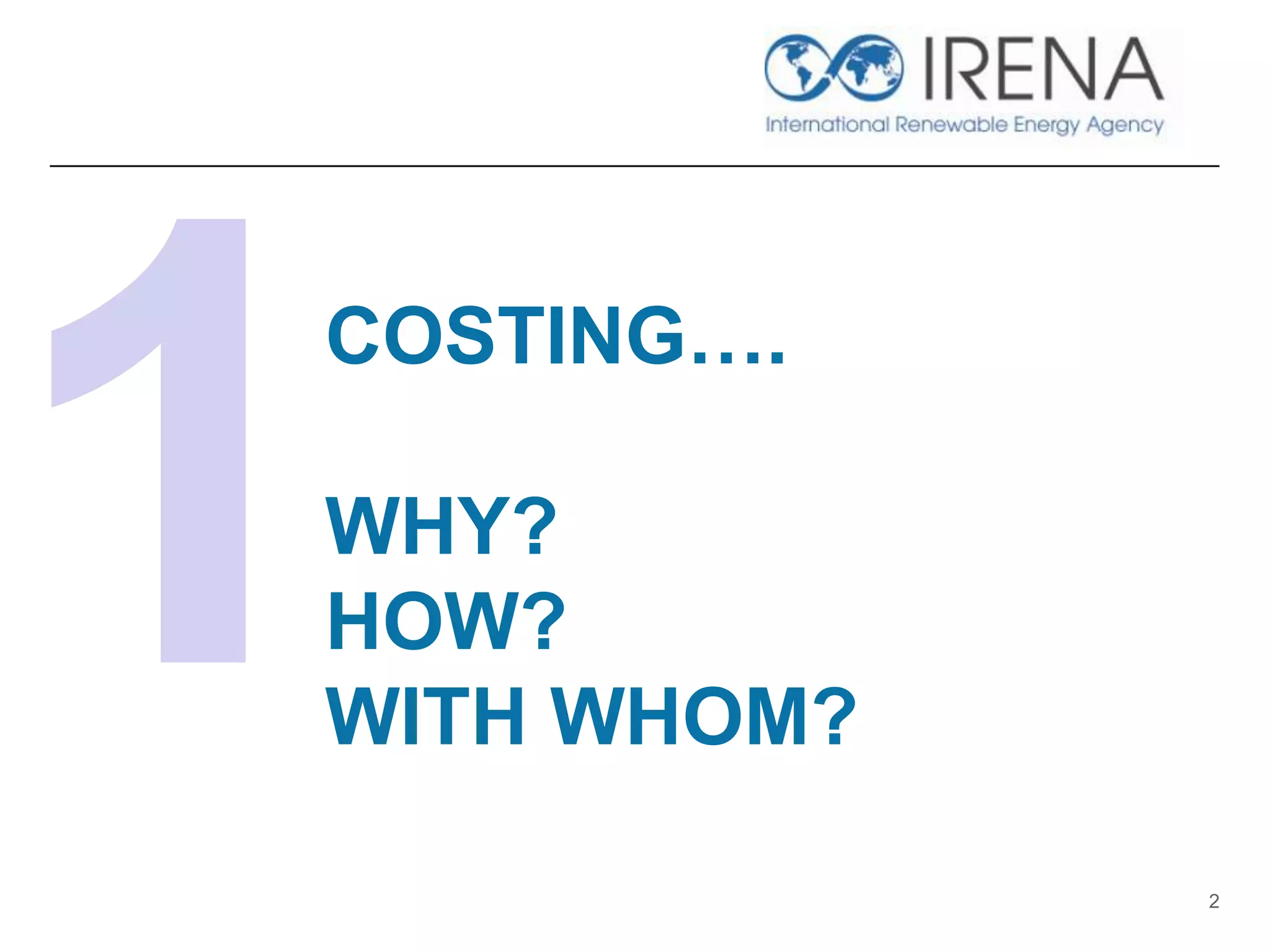 The document discusses IRENA's analysis on power generation costs, emphasizing the increasing competitiveness of renewable energy sources like solar PV and wind. It highlights the necessity for updated data to guide governmental decision-making and ambitious policies, particularly in relation to cost reductions and technological advancements. The document outlines future plans to enhance data sharing through the IRENA Renewable Costing Alliance, aiming to support the growth of renewables by 2030.