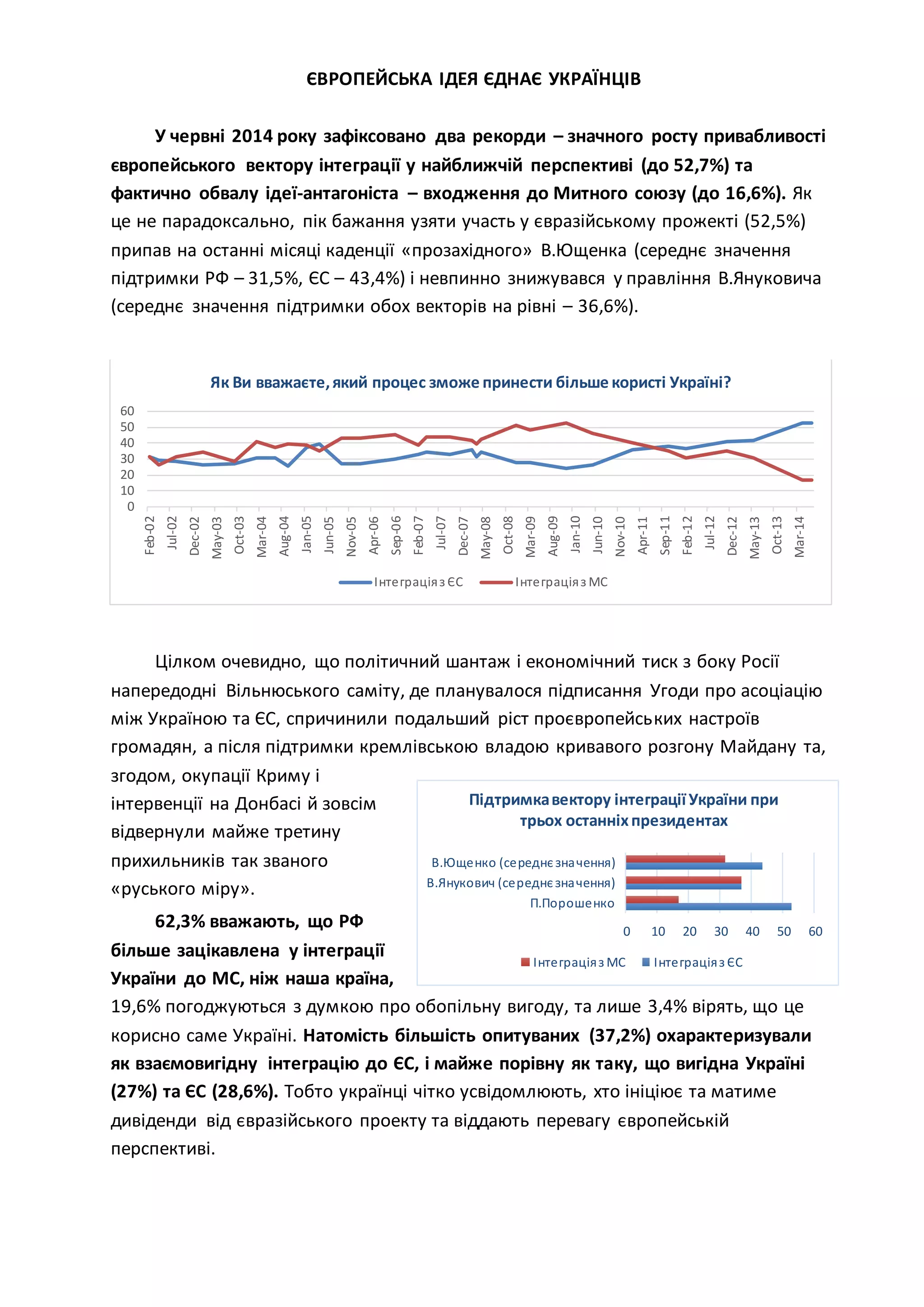 Майдан закордонних справ презентував дослідження, проведене спільно з соціологічною службою Центру Разумкова з 31 травня по 5 червня 2014 року. Було опитано 2001 респондента віком від 18 років у всіх регіонах України за винятком Криму за вибіркою, що репрезентує доросле населення за основними соціально-демографічними показниками. Вибірка опитування будувалася як багатоступенева, випадкова із квотним відбором респондентів на останньому етапі. Теоретична похибка вибірки (без врахування дизайн-ефекту) не перевищує 2,3% з імовірністю 0,95.