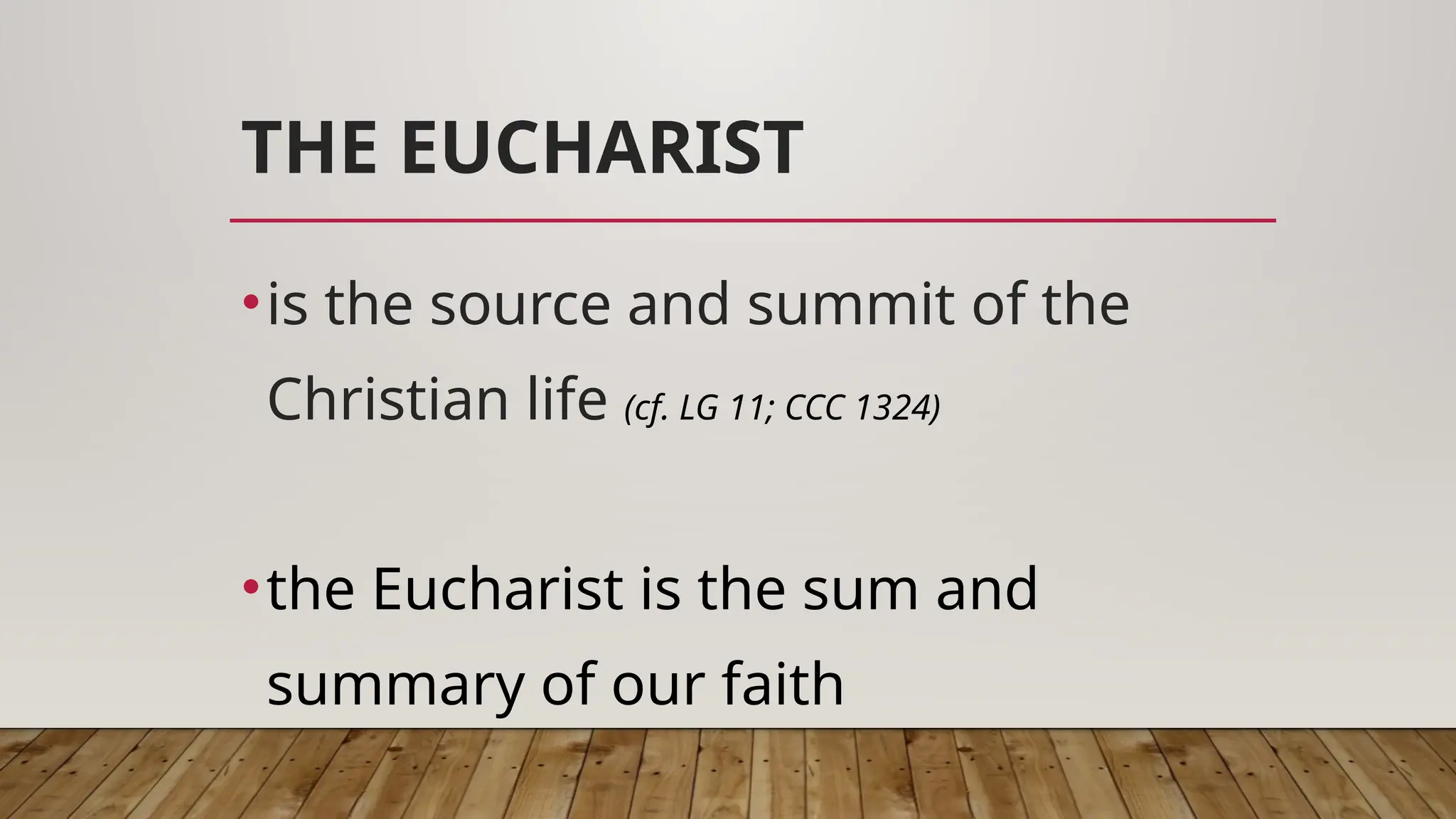 EUCHARIST - SOURCE AND SUMMIT of the CHRISTIAN LIFE