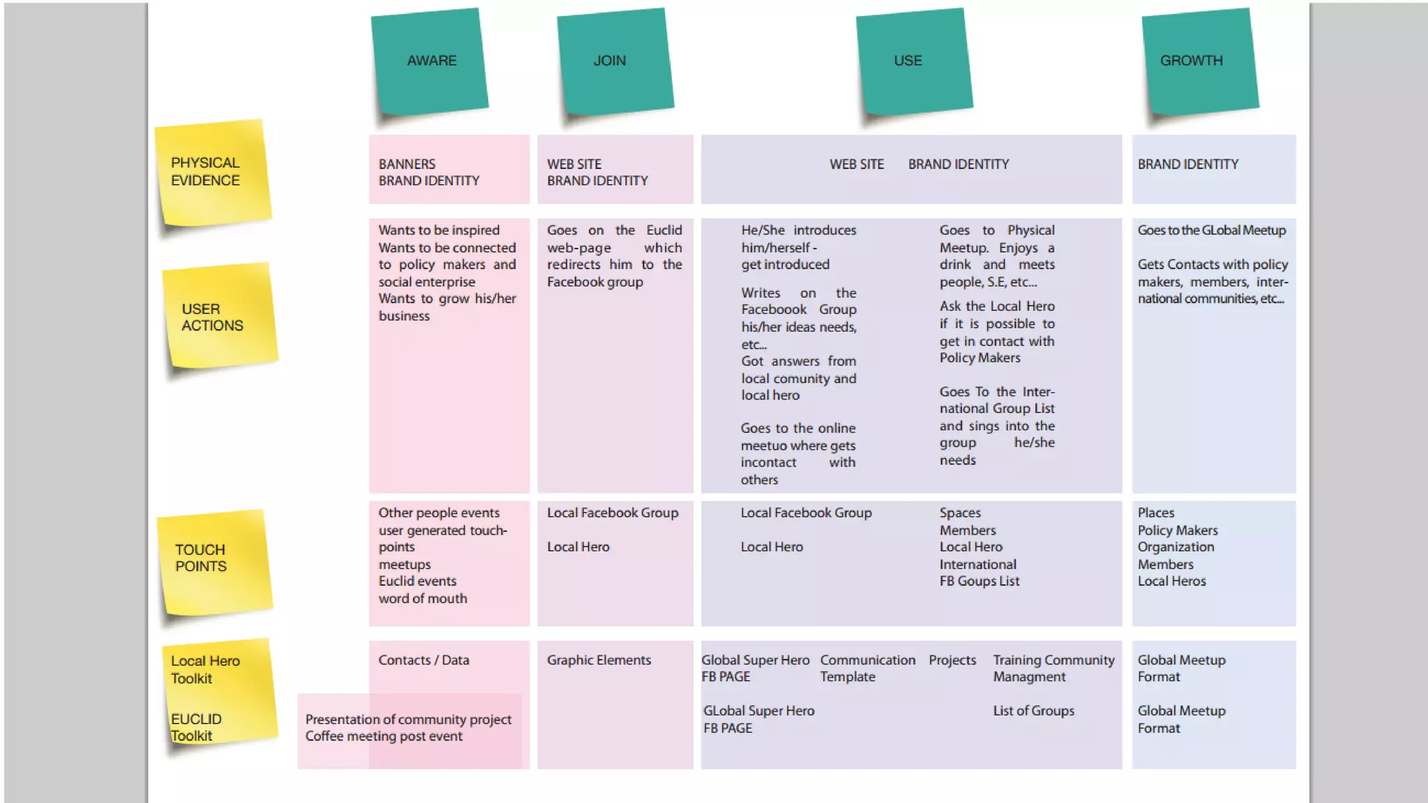 This document discusses ways to make the Euclid Network more accessible to social entrepreneurs to connect them with policy makers. It suggests building an open collaboration community using a Euclid wiki with engagement toolkits. This would generate both digital and physical spaces for social entrepreneurs and policy makers to connect. A local hero facilitator with the toolkit could help by organizing local meetings and events to share projects, ideas and connect social entrepreneurs to opportunities. Building local Facebook groups and providing community management training and tools in the wiki toolkit could help local heroes in their role.