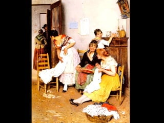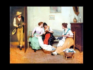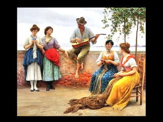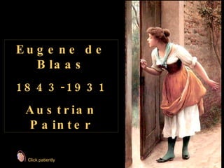 Eugene de Blaas was an Austrian painter born in 1843 in Albano, Italy to Austrian parents. He came from an artistic family, with his father Karl being a notable portrait painter of Roman society. Karl eventually took positions teaching at art academies in Vienna and Venice. Eugene de Blaas established himself as a leading painter of genre scenes from Venice, depicting the lives of Venetian fishermen, gondoliers, and beauties, catering to affluent visitors to Venice who wanted depictions of daily life in the city.