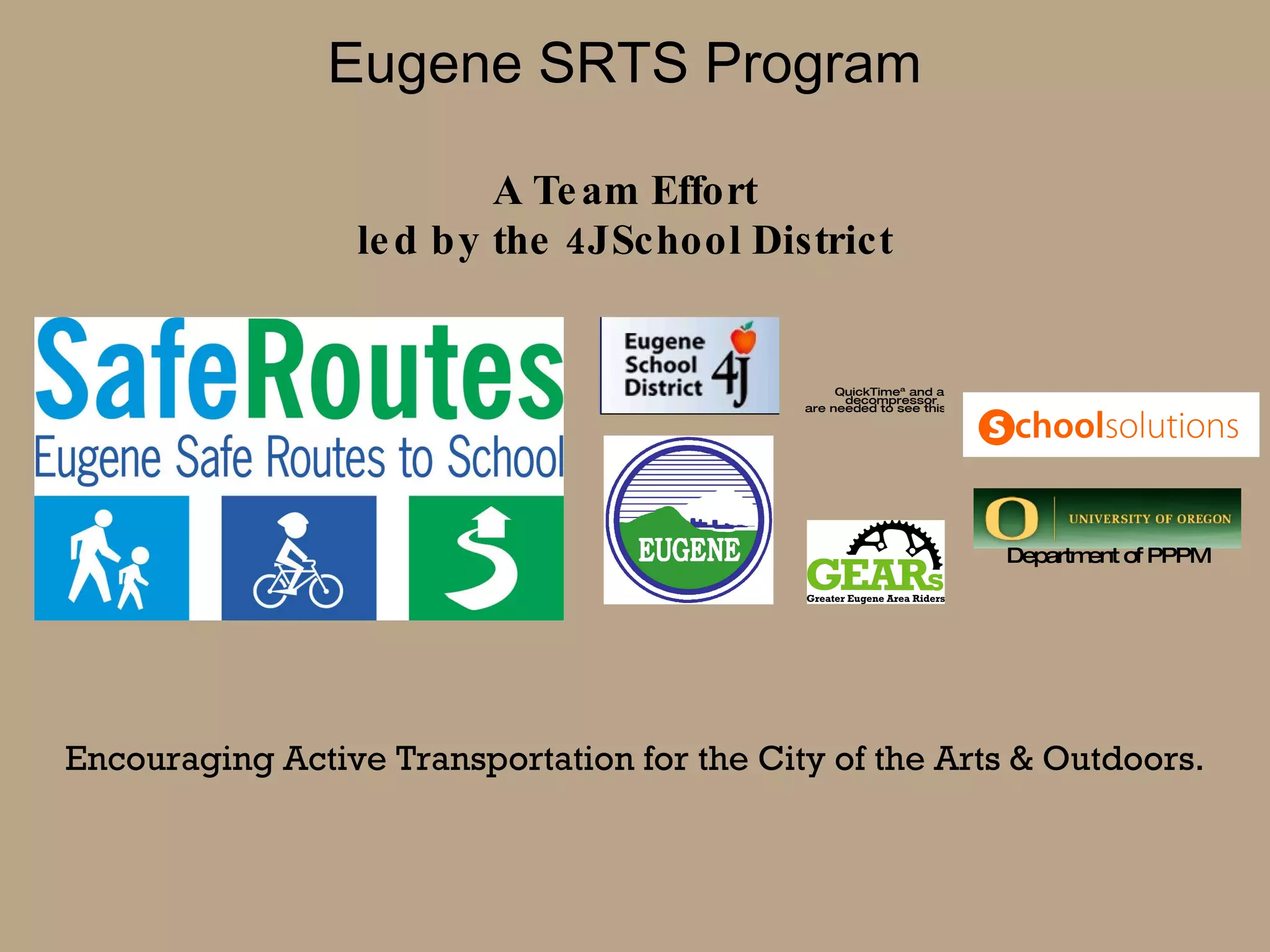 The Eugene Safe Routes to School (SRTS) program, led by the 4J School District, promotes active transportation through community collaboration among city, district, university, and community members. The program includes encouragement initiatives like Walk + Bike Day, educational activities, enforcement measures, and engineering improvements to enhance walkability and bikeability for students. With ongoing evaluations and a commitment to policy changes, the program seeks to sustain its impact beyond grant funding.