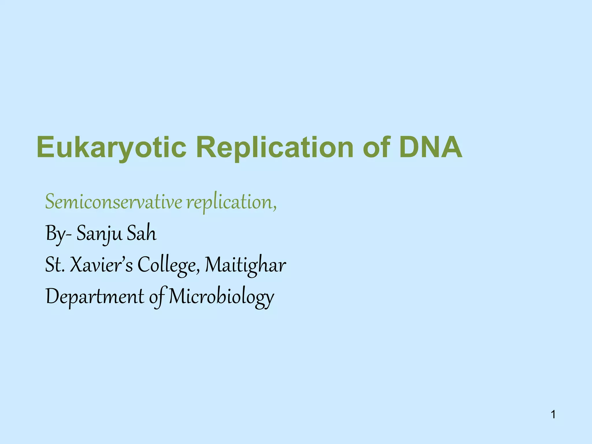 DNA replication is semi-conservative and begins at origins of replication. In eukaryotes, replication initiates from multiple origins and proceeds bidirectionally. The double helix separates into single strands through the action of helicase. DNA polymerase adds nucleotides to the 3' end of the growing strand based on complementary base pairing. Leading and lagging strands are synthesized differently due to their direction of synthesis relative to the replication fork. Fidelity is ensured by proofreading exonuclease activity and mismatch repair systems.