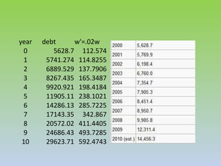 Euler's method is a numerical approach for approximating solutions to differential equations. It works by taking an initial condition and using the tangent line at that point to take a small step to a new point. This process is repeated, using the new point as the initial condition. The smaller the step size, the more accurate the approximation will be. An example walks through applying Euler's method to the differential equation y' = x + y with an initial condition of y(0) = 2 using 10 steps of size 0.1.