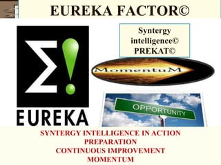 After World War 2, Japan faced a crisis as it lost the war and its reputation for military conquest. A new approach was needed. This document describes Japan's adoption of the "Eureka Factor", which involved developing four types of intelligence - behavioral, moral, relational, and character intelligence. It argues this approach helped Japan rebuild successfully and become one of the most prosperous nations with the highest education and longevity levels in the world. The Eureka Factor focuses on discipline, preparation, continuous improvement, and timing to drive positive change.