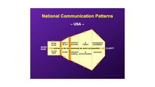 This document discusses various aspects of European culture, history, and communication styles. It provides information on topics like multiculturalism in Europe, the spread of European influence through colonization and imperialism, key events in European history like the Renaissance, Reformation, Industrial Revolution, and World Wars, as well as analysis of trust levels, leadership styles, and communication patterns in different European countries. The document also describes some notable European cultural landmarks and features of the built landscape.