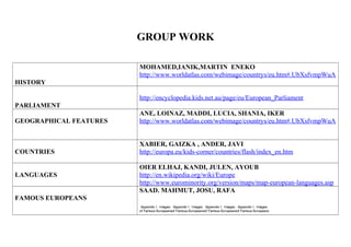 The document discusses a group project on the European Union. It is divided into the following sections: