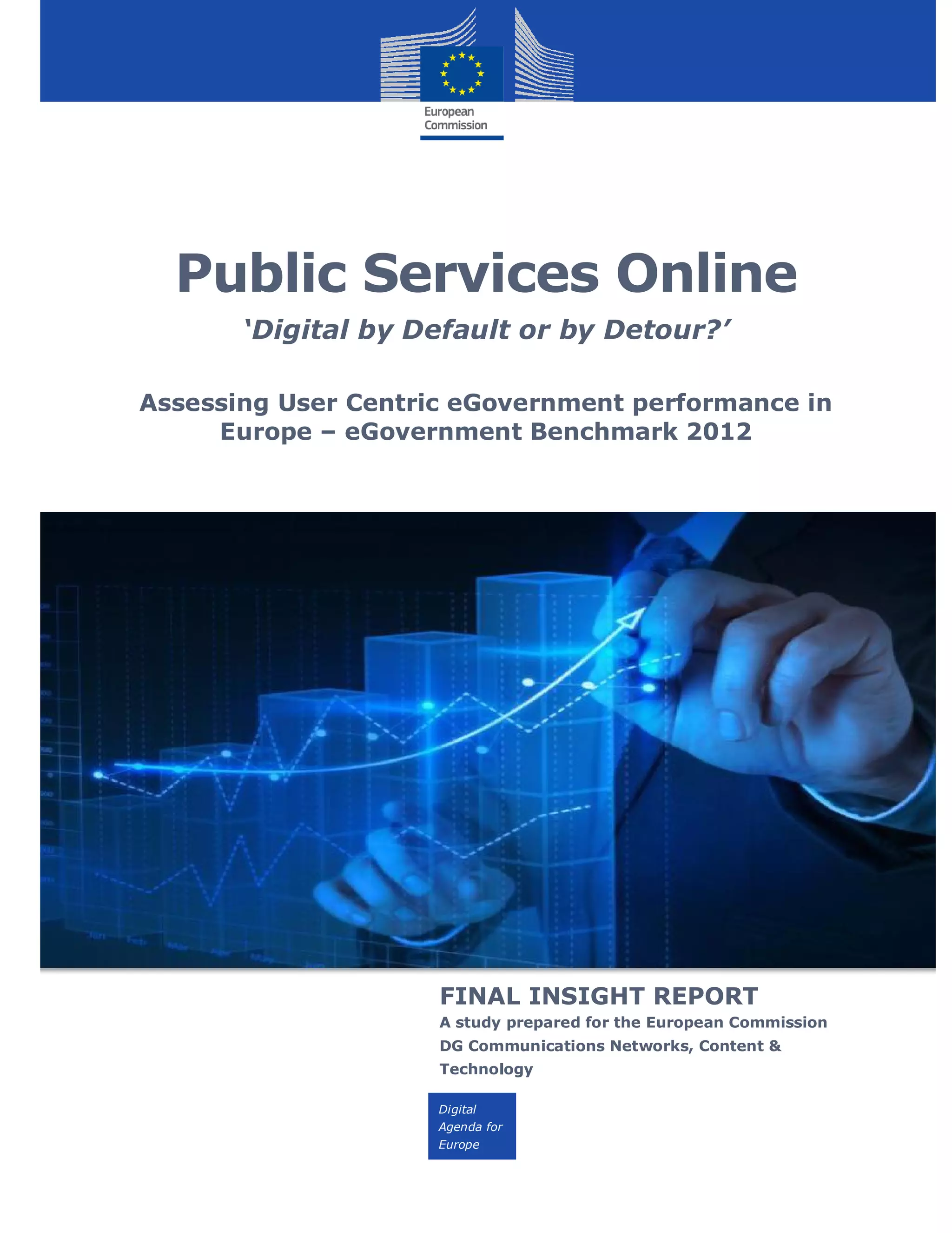 This document summarizes the findings of the 2012 eGovernment Benchmark survey conducted across 32 European countries. Key findings include: