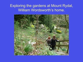 The document describes various locations visited in Scotland and England, including William Wordsworth's home in the Lake District, Edinburgh Castle, shops and museums in Edinburgh, an overnight train to London, sights in London like Buckingham Palace, Windsor Castle, and Westminster Abbey, as well as a Monty Python reference at the end.