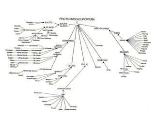 The document discusses the different language families spoken in Europe. It describes the major families such as Indo-European, Finno-Ugric, Turkic, Semitic and others. Within the Indo-European family it outlines the different subgroups including Germanic, Romance, Slavic and others. It provides examples of major languages within each subgroup and notes their distributions and relationships.