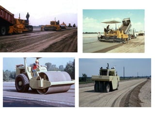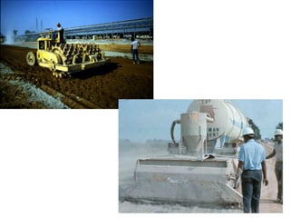 This document summarizes a presentation on subgrade stabilization methods for concrete pavements. It discusses the role of the subgrade in pavement performance and outlines various treatment options including removal and replacement, compaction, geotextiles, chemical stabilization using lime and cement. The presentation provides details on laboratory testing and construction steps for lime and cement stabilization, including mixing, compaction, curing and quality control. Subgrade stabilization improves the strength and uniformity of the subgrade for use as a construction platform and structural layer.