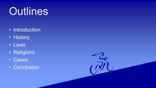 2) It briefly discusses the history of euthanasia from ancient Greece to modern times, including milestones in laws and medical views.