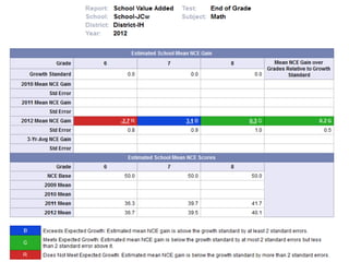 - Explaining the difference between student achievement, which is correlated with demographics, and growth, which depends more on school factors, is important for others to understand. EVAAS measures growth rather than just proficiency.