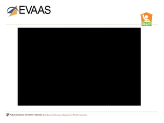 - The document contrasts achievement vs. growth and explains how EVAAS focuses on measuring academic growth rather than just proficiency levels.