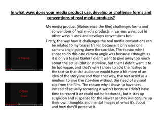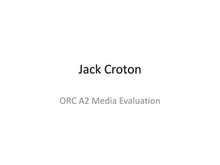 Jack Croton discusses how he used new media technologies in the construction, research, planning, and evaluation of his media project. He used websites, Photoshop, YouTube, and questionnaires to research horror conventions and get audience feedback. Planning was done through blogging, notes on his phone, and experimenting with layouts in Photoshop. Construction involved using an iPhone camera and Photoshop to edit images and design the poster, trailer, and magazine cover. Social media was also used to evaluate audience response.