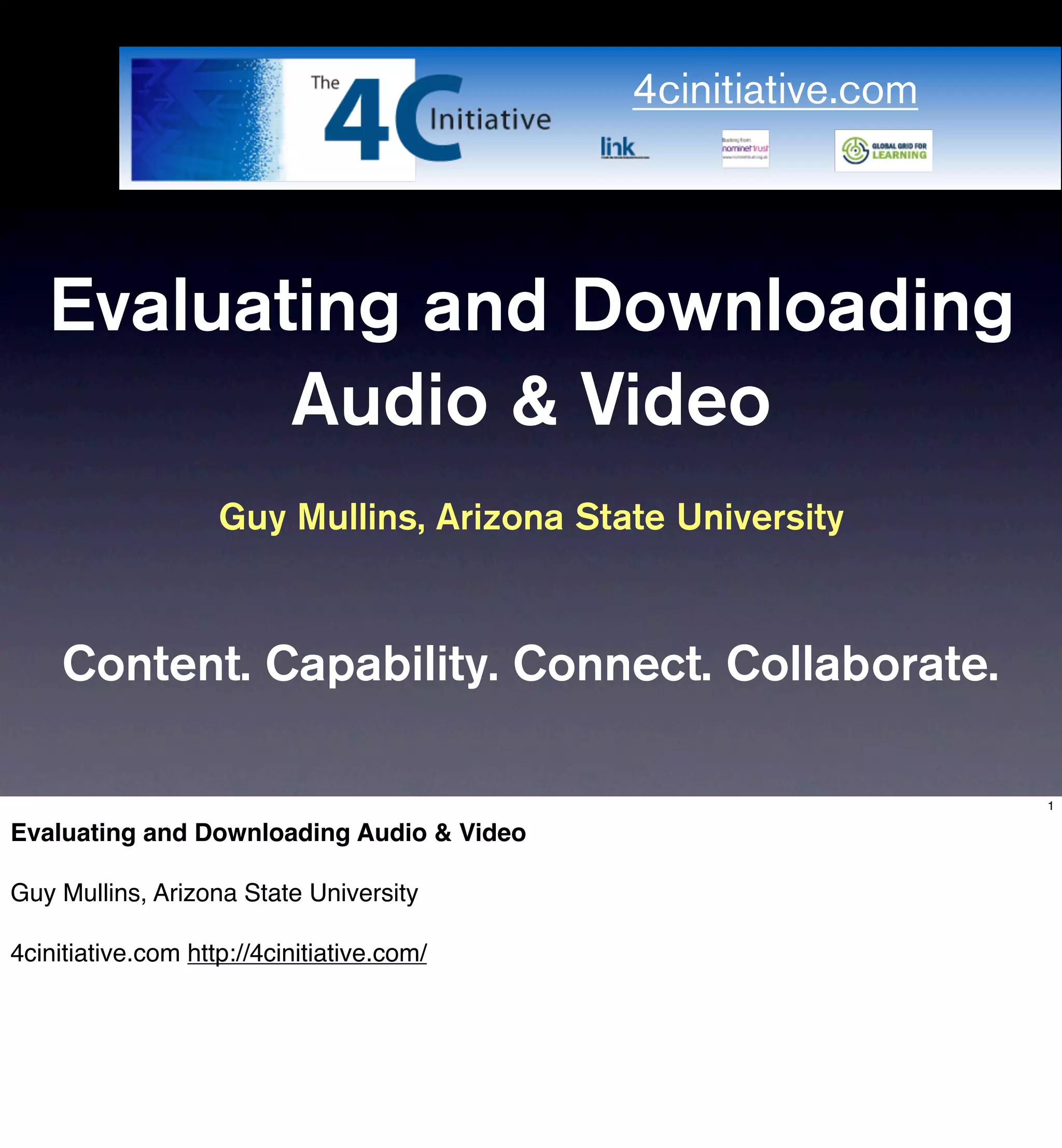 The document discusses various media tools and educational resources available for video and audio content, particularly focusing on platforms like YouTube, iTunes U, and Academic Earth. It emphasizes the importance of video creation over mere viewing, highlights a range of projects from Arizona State University, and introduces open-source tools for educational media. Additional points include the role of Creative Commons and the Internet Archive in providing accessible educational materials.